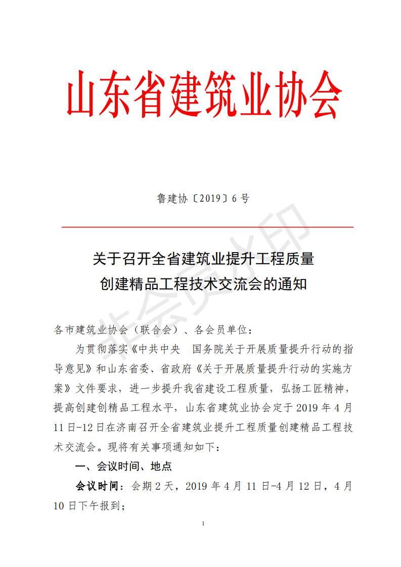 關(guān)于召開(kāi)全省建筑業(yè)提升工程質(zhì)量創(chuàng)建精品工程技術(shù)交流會(huì)的通知