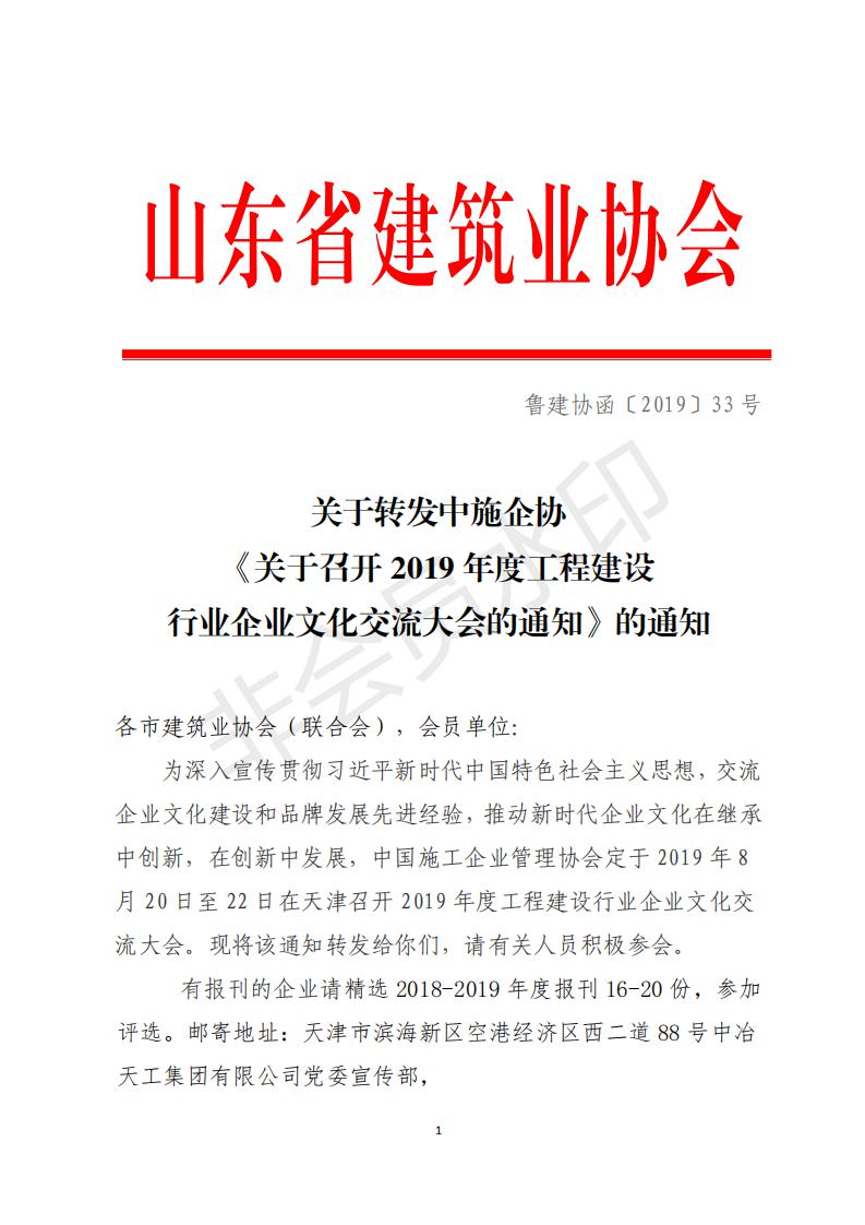 附件:中施企協(xié)《關于召開 2019 年度工程建設行業(yè)企業(yè)文 化交流大會的通知》.zip